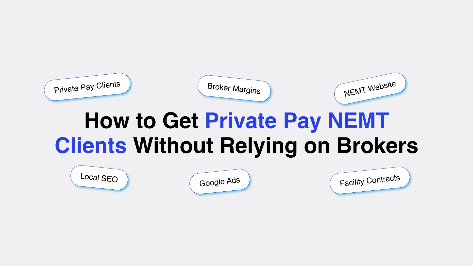 Broker trips pay as little as $8 per ride. Private pay clients pay 2x to 4x more, and they are searching for NEMT services on Google right now. This guide covers how to build a website that ranks and converts, use local SEO, run Google Ads, and win direct facility contracts.