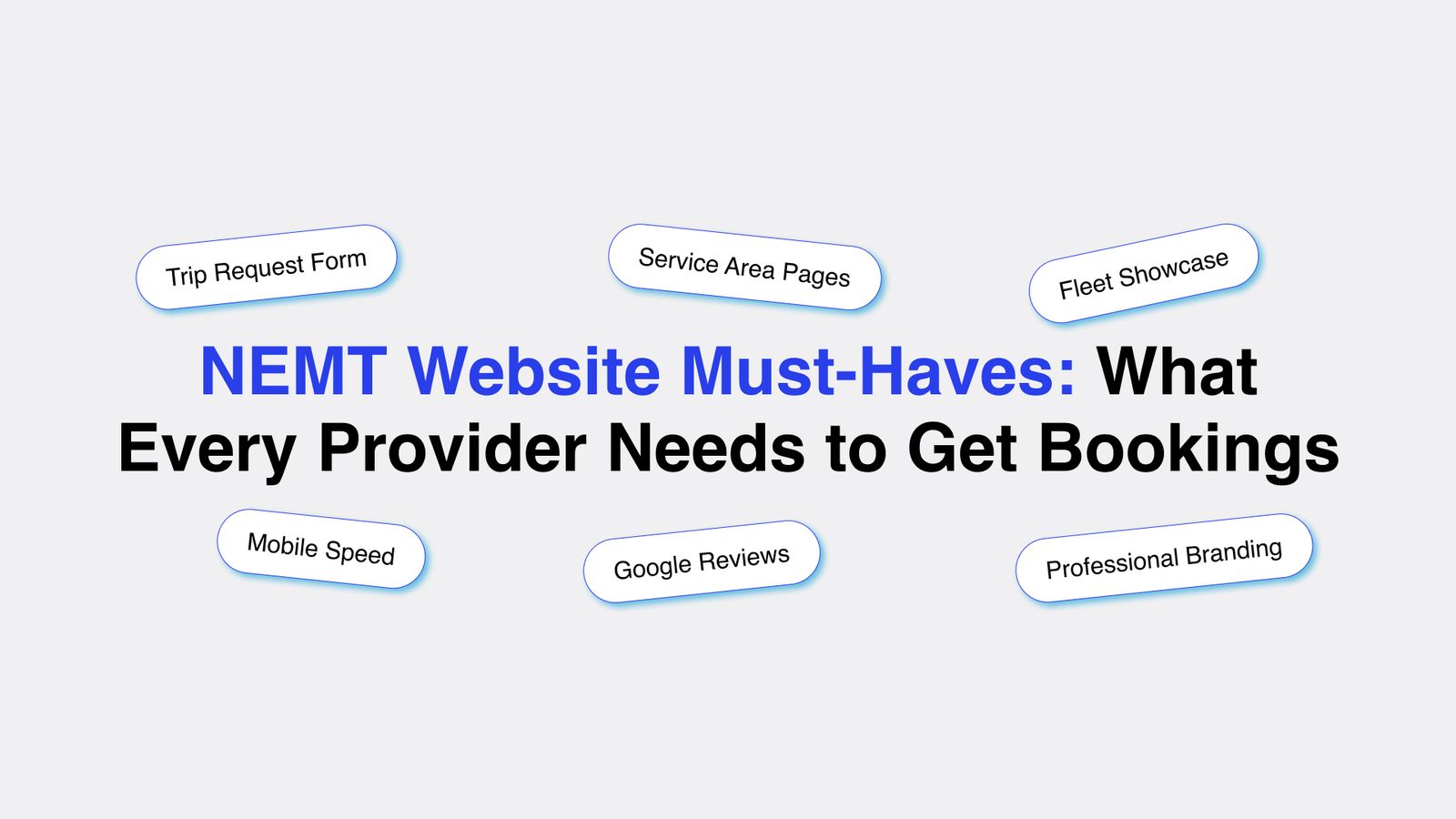 This guide covers every element your NEMT website needs to rank on Google, earn trust from visitors, and turn that traffic into booked trips. Whether you work with a NEMT solution provider or manage bookings in-house, these are the features that separate websites that produce revenue from ones that do not.