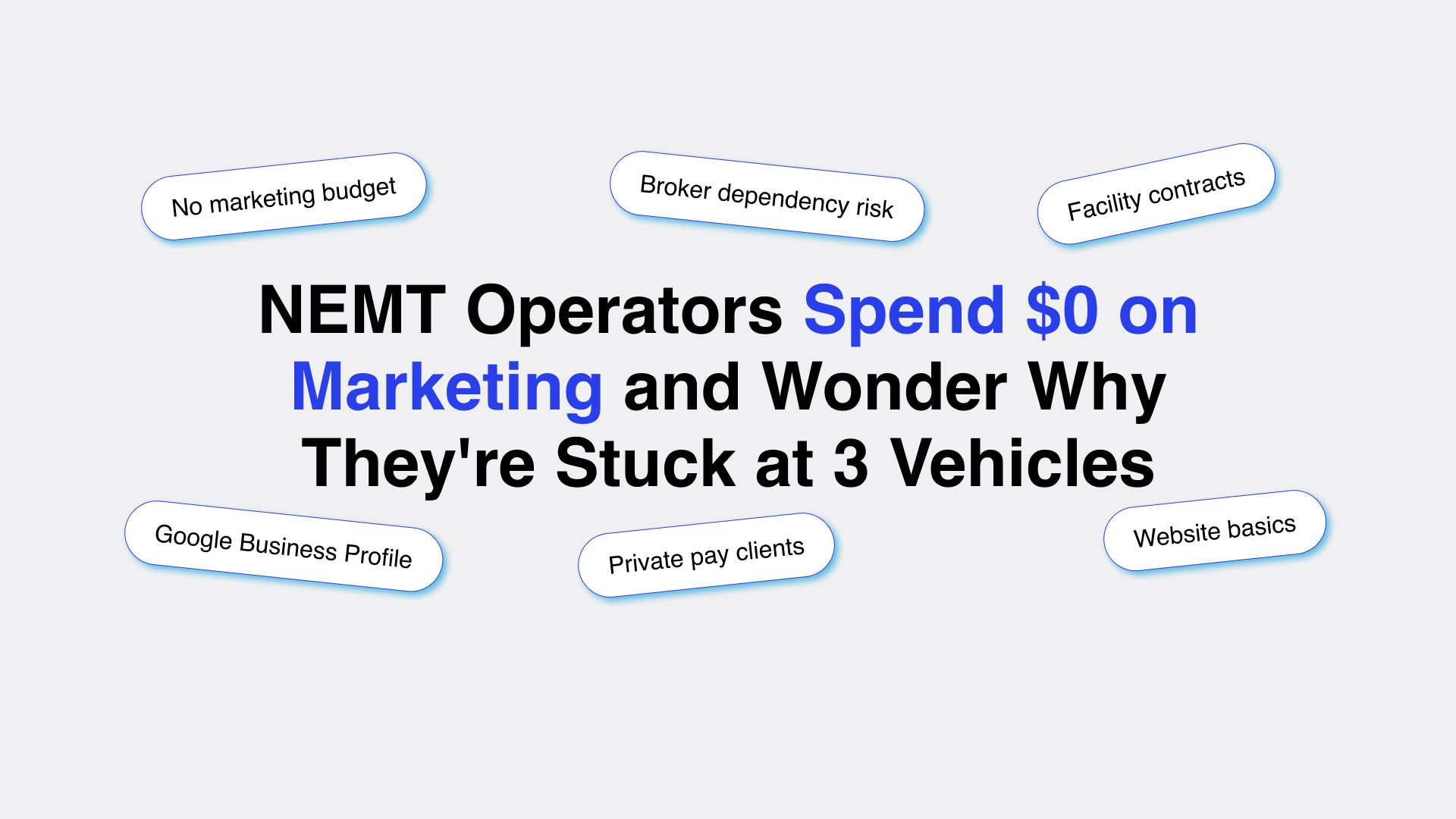 NEMT operators spending $0 on marketing are losing facility contracts and private pay clients every day. Here's what it costs you and where to start.